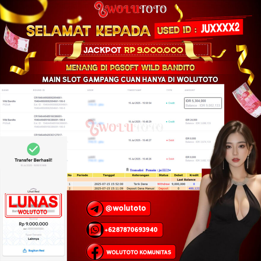 Selamat yang sebesar-besarnya kami ucapkan kepada user JU****2 atas keberhasilannya meraih jackpot senilai Rp 9.000.000 di WOLUTOTO! Kemenangan ini menjadi salah satu pencapaian luar biasa yang kembali membuktikan bahwa WOLUTOTO adalah platform terpercaya, adil, dan selalu memberikan peluang nyata bagi setiap member untuk meraih hadiah besar.